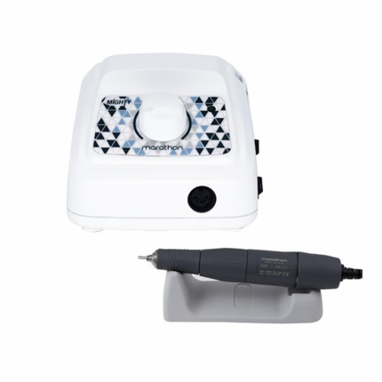 Freza MARATHON 3 Mighty Saeyang este un aparat compact și puternic pentru manichiură și pedichiură hardware. Parametrii săi corespund celor ai modelului Marathon‑3 Champion, de aceea mânerele sunt interschimbabile. Diferența dintre ele constă în design. Datorită puterii bune, freza poate prelucra diferite tipuri de unghii — atât moi, cât și mai dure. La acest model, conectorul piesei de mână către blocul de alimentare este amplasat în partea frontală. În partea superioară, blocul de alimentare are orificii pentru freze, ceea ce este foarte comod în timpul lucrului.